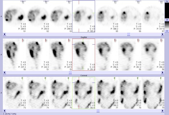 Po příslušné přípravě jsme provedli planární celotělovou scintigrafii