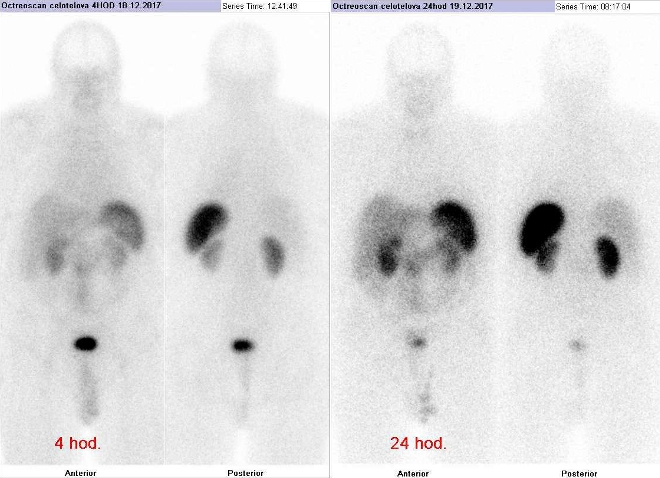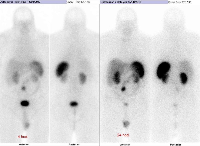 Scintigrafie Octreoscanem před čtyřmi měsíci: